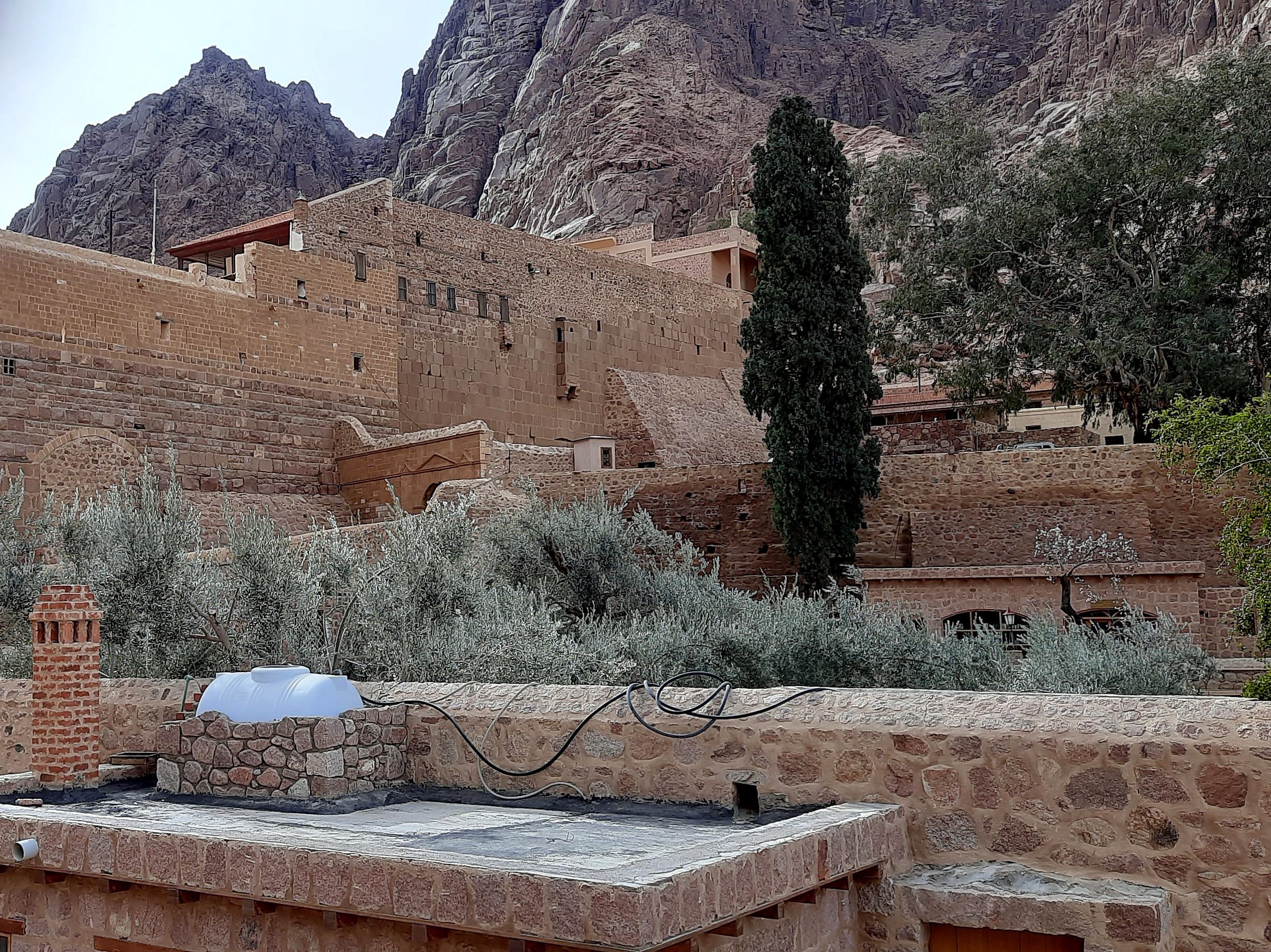 The descent in daylight was much easier, and we could now fully enjoy the magnificent desert mountain scenery. Before returning to Dahab around midday, we visited the monastery and learned more about the Greek Orthodox church. I also caught a glimpse of the famous ‘burning bush’, where God is said to have revealed himself to Moses. You can learn more about this religious site on Mount Sinai here.